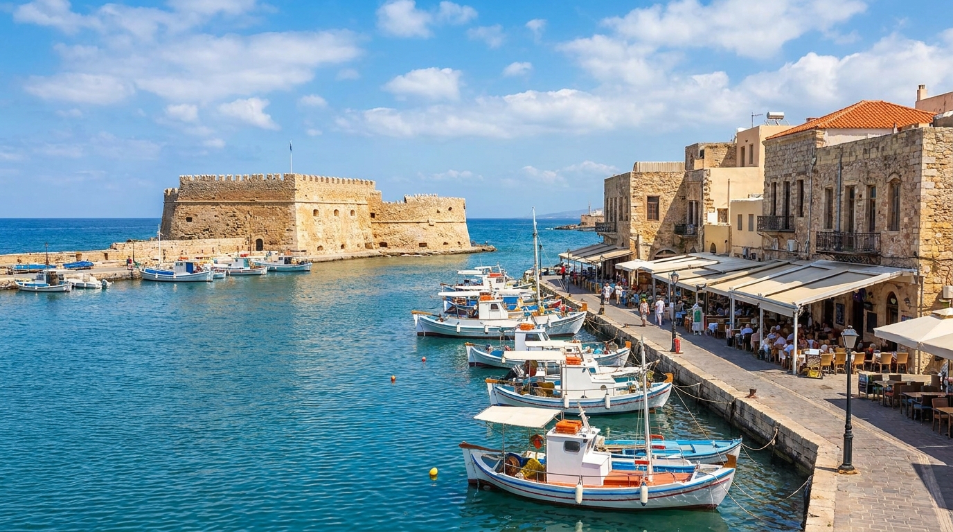 Heraklion to największe miasto Krety i często pierwszy punkt kontaktu z wyspą. Wielu turystów traktuje je jedynie jako bazę wypadową do Knossos, ale warto poświęcić mu więcej czasu. Miasto oferuje połączenie codziennego życia mieszkańców, zabytków oraz dostępu do ważnych miejsc związanych z historią Krety.