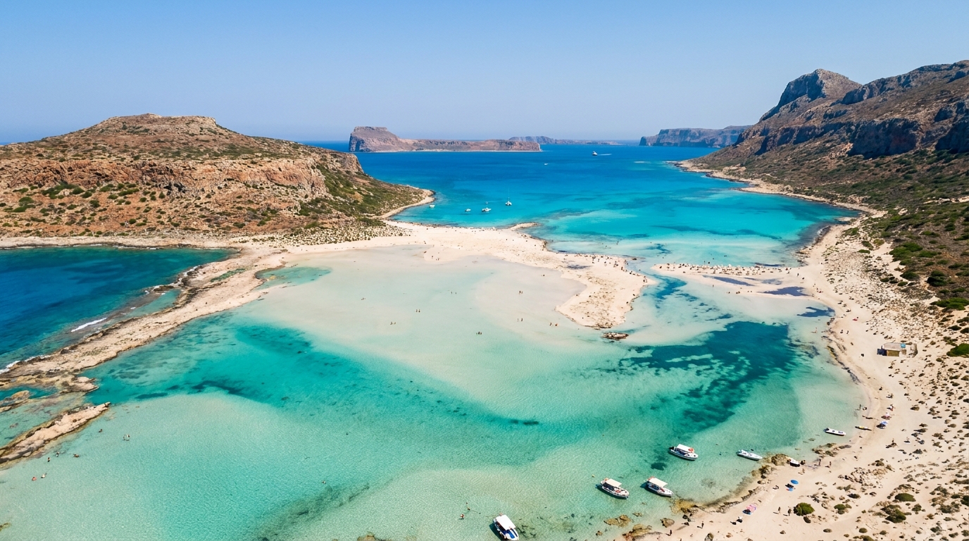 Balos to jedno z najbardziej rozpoznawalnych miejsc na Krecie. Słynna laguna zachwyca turkusową wodą, jasnym piaskiem i niezwykłym krajobrazem, który wielu osobom kojarzy się z egzotycznymi zakątkami świata. To właśnie zdjęcia Balos bardzo często pojawiają się w folderach turystycznych i materiałach promujących wyspę.